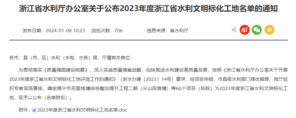 發(fā)布日期:2024.01.15 近日,經(jīng)浙江省水利廳2023年度浙江省水利文明標(biāo)化工地名單公布,我院承擔(dān)全過程工程咨詢的寧波市江北區(qū)小西壩泵站工程喜獲“浙江省文明標(biāo)化工地”稱號(hào),成為寧波市水利行業(yè)的標(biāo)桿... -