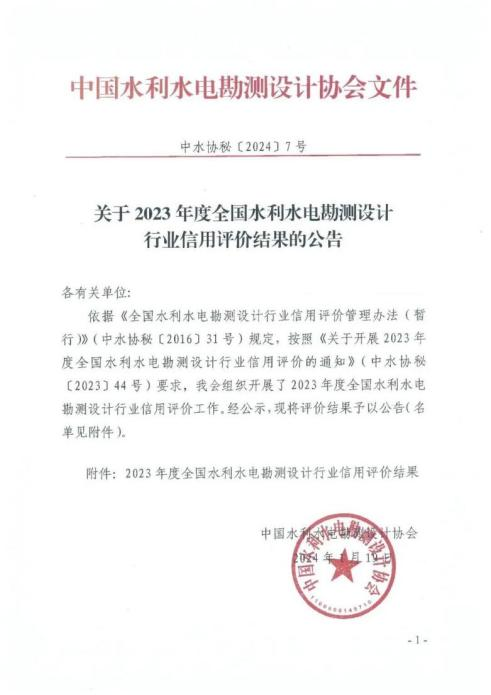 4項(xiàng)AAA,3項(xiàng)AAA+!我院在2023年度水利建設(shè)市場主體及全國水利水電勘測設(shè)計(jì)行業(yè)信用評(píng)價(jià)中再創(chuàng)佳績