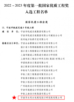 發(fā)布日期:2023.04.28 近日,經(jīng)國家優(yōu)質(zhì)工程獎專家評審委員會綜合評議,中國施工企業(yè)管理協(xié)會審議,我院參與設(shè)計的寧波軌道交通4號線工程榮獲國家優(yōu)質(zhì)工程金獎。據(jù)悉,國家優(yōu)質(zhì)工程獎設(shè)立于1981年,是經(jīng)國務(wù)... -