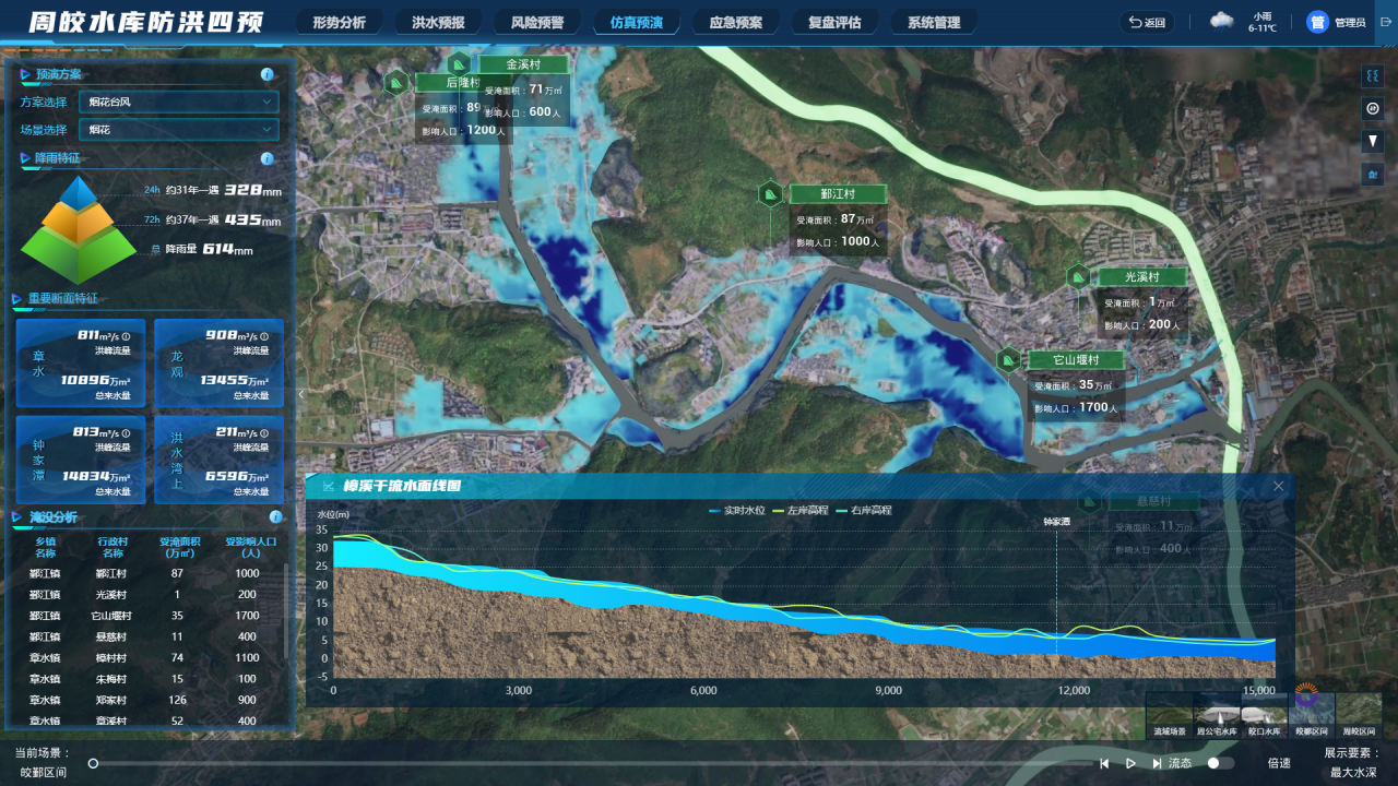 目前,本案例核心成果已在寧波市6座大型和10座重要防洪中型水庫實際應用并取得成效,建設了“寧波市大中型水庫防洪調度統(tǒng)一管理系統(tǒng)”,助力寧波市水庫管理中型實現(xiàn)全市大中型水庫的防洪調度統(tǒng)一管理。其中,作為本案例的典型實踐應用,“數(shù)字孿生周公宅-皎口梯級水庫”依托水利部 2022 年“數(shù)字孿生流域建設先行先試工作(2022-2023年)”先行先試試點項目開展實施,并成功支撐周公宅和皎口兩座水庫有效應對 2022 年的“軒嵐諾”和“梅花”、2023 年的“杜蘇芮”和“卡努”、2024 年的“貝碧嘉”和“康妮”等多場臺風暴雨的實戰(zhàn)驗證。