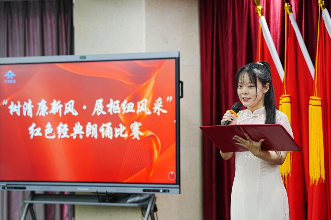 隨后的“樹清廉新風(fēng)·展樞紐風(fēng)采”紅色經(jīng)典朗誦比賽中,匯聚了來自樞紐公司與參建單位的25名選手。我院選送的作品緊扣“樹清廉新風(fēng)”主題,由工程院唐楚珺與規(guī)劃院李小杰兩位青年職工擔(dān)綱朗誦。備賽期間,二人利用業(yè)余時間精研稿件,雕琢細(xì)節(jié),并精心設(shè)計朗誦形式,反復(fù)演練,積極備戰(zhàn)。