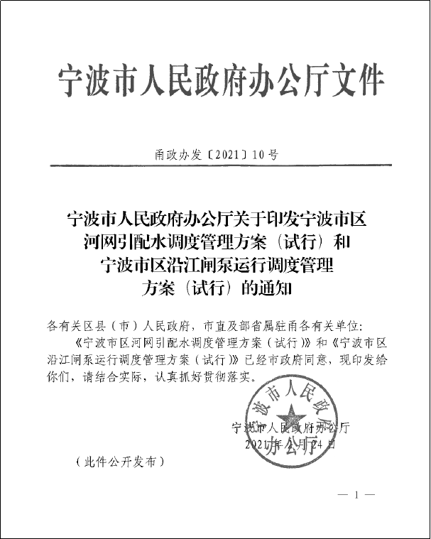 鑒于姚江二通道(慈江)工程的復(fù)雜性和特殊性,以及上下游調(diào)度的敏感性,為科學(xué)指導(dǎo)工程建成后的調(diào)度運(yùn)行管理,研究提出的《姚江二通道(慈江)工程閘泵試運(yùn)行調(diào)度規(guī)則》,于2021年2月24日經(jīng)寧波市人民政府辦公廳公開發(fā)布,成果應(yīng)用于2021年7月“煙花”臺(tái)風(fēng)防御當(dāng)中。
