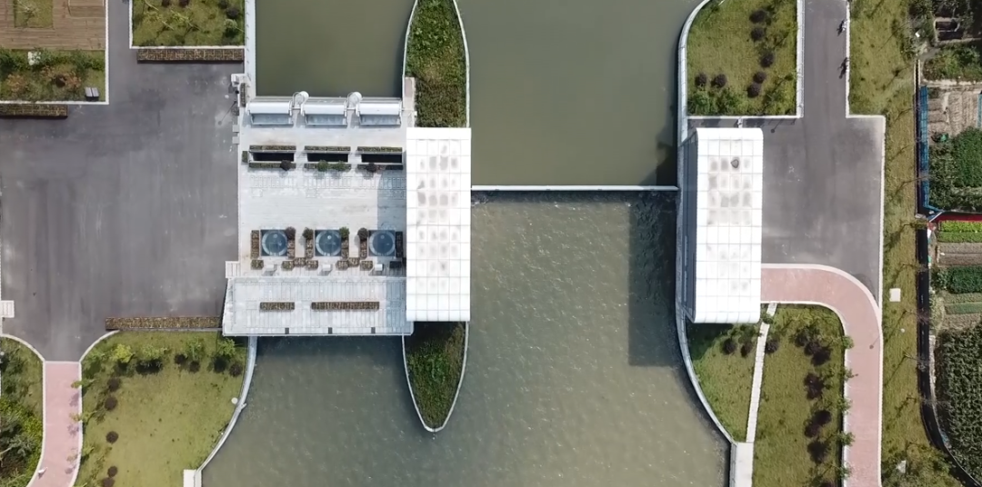 項(xiàng)目建筑設(shè)計(jì)與周邊環(huán)境完美結(jié)合。泵站及閘門上部采用無(wú)廠房設(shè)計(jì),水泵機(jī)組采用立式潛水機(jī)組,閘門采用底軸驅(qū)動(dòng)翻板門,泵站上下游視野通透,觀感效果佳。管理房屋頂設(shè)計(jì)為綠化屋頂,管理房隱藏于周邊綠化之中,滿足姚江岸高標(biāo)準(zhǔn)景觀要求。生態(tài)河道設(shè)計(jì)符合人文和諧之美。護(hù)岸采用干壘生態(tài)擋塊,中間預(yù)留魚槽設(shè)計(jì),充分體現(xiàn)了生態(tài)環(huán)保設(shè)計(jì)理念。