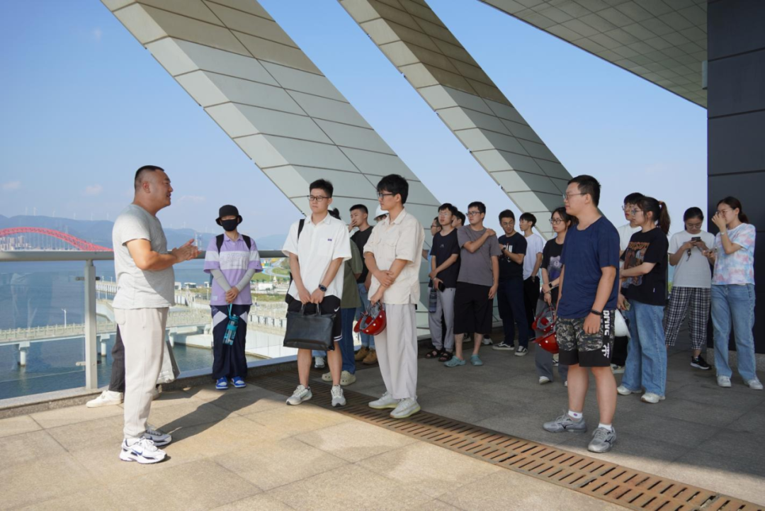 最后,研學(xué)隊伍來到北堤樞紐參觀。該工程榮獲中國建筑行業(yè)工程質(zhì)量的最高榮譽獎——2020-2021年度第一批中國建設(shè)工程魯班獎。胡經(jīng)理帶領(lǐng)研學(xué)隊伍依次進(jìn)入啟閉機房、觀景臺、控制室等處,現(xiàn)場講解工程設(shè)計思路、建造工藝和管理要點。