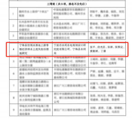 近日,浙江省水土保持學(xué)會第三屆優(yōu)秀設(shè)計評選獲獎名單出爐,15個獲獎工程中,我院成功鎖定一席!此次我院受寧??h水利局委托開展實施的寧??h飲用水源地上游香榧經(jīng)濟林水土流失防治措施研究榮獲三等獎。該獎項由浙江省水土保持學(xué)會設(shè)立,每兩年評審一次,通過對水土保持規(guī)劃設(shè)計領(lǐng)域中取得優(yōu)異成績的集體和個人進行表彰,從而推動全省水土保持行業(yè)的發(fā)展。