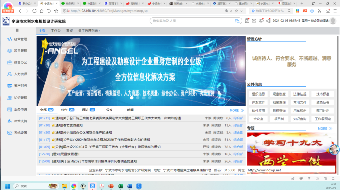 從2002年探索建設流域數(shù)字化至今,寧波院業(yè)務的數(shù)字化已走過了20多年,2023年,以事業(yè)部制轉(zhuǎn)型為契機,提出建設以OA辦公系統(tǒng)、業(yè)財一體化系統(tǒng)、知識庫系統(tǒng)為代表的管理工具,在業(yè)務數(shù)字化的基礎上,推動企業(yè)管理的數(shù)字化轉(zhuǎn)型。