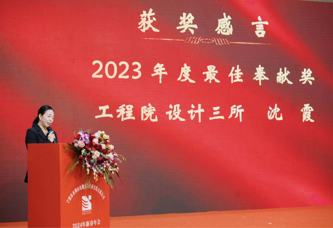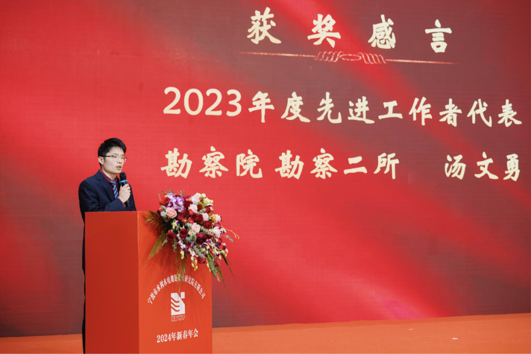 2023年度先進(jìn)工作者獲獎(jiǎng)代表勘察院勘察二所的湯文勇、2023年度最佳奉獻(xiàn)獎(jiǎng)獲獎(jiǎng)?wù)吖こ淘涸O(shè)計(jì)三所的沈霞、2023年度最佳新人獎(jiǎng)獲獎(jiǎng)代表規(guī)劃院規(guī)劃二所的魯經(jīng)宇,先后上臺發(fā)表獲獎(jiǎng)感言,以真摯的情感、質(zhì)樸的語言和滿滿的憧憬,表達(dá)了自己與企業(yè)共同成長過程中的勵(lì)志故事和切身感悟,表達(dá)了寧波院中堅(jiān)力量、團(tuán)隊(duì)骨干和新兵后輩的豪情壯志。