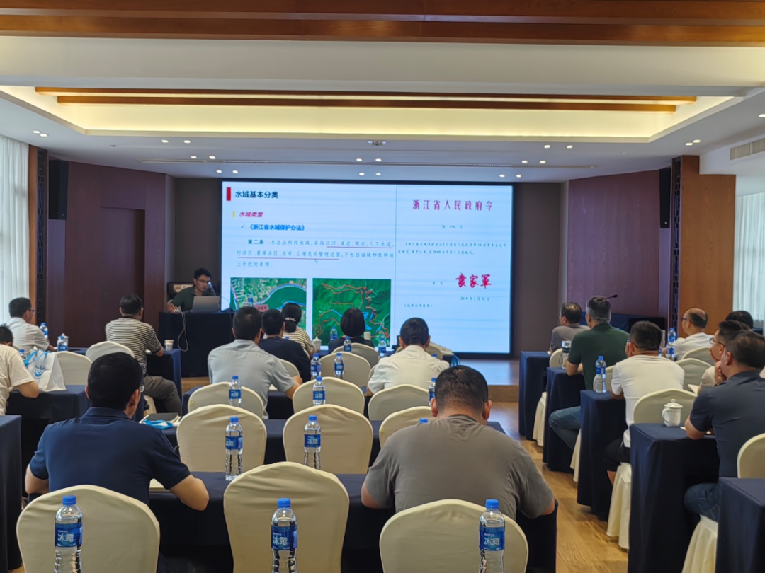 培訓(xùn)現(xiàn)場,我院規(guī)劃四所所長楊益青憑借其扎實的學(xué)術(shù)功底與豐富的實踐經(jīng)驗,生動呈現(xiàn)了海曙區(qū)這一歷史與現(xiàn)代交融之地的水文畫卷。他從水域基本分類出發(fā),清晰介紹劃分區(qū)內(nèi)河道、湖泊、水庫、山塘等各類水域,為參訓(xùn)人員構(gòu)建起海曙區(qū)水系結(jié)構(gòu)基本框架;隨后,依托《海曙區(qū)水域調(diào)查》的研究成果,系統(tǒng)介紹了當前水域的分布情況、水域功能等關(guān)鍵信息,并緊扣《海曙區(qū)水域保護規(guī)劃》,深入淺出地闡述了未來水域的規(guī)劃布局。最后依托我院在該領(lǐng)域的最新技術(shù)和成功案例,結(jié)合水域歷史演變及近期變化,分享我院在水域管理保護方面的典型辦法和先進舉措。